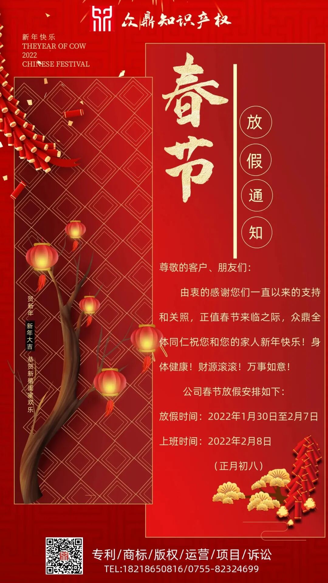 【众鼎】春节放假通知